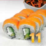 Aguacate, pepino y philadelphia por dentro. Cubierto de salmón fresco.