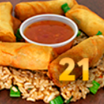 5 Rollos Primavera rellenos de vegetales acompañados de aderezo Sweet Chili base mango.