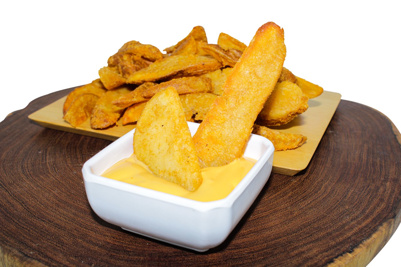 250 gramos de ricas Papas en gajos, sazonadas con paprika, con un delicioso aderezo de queso.